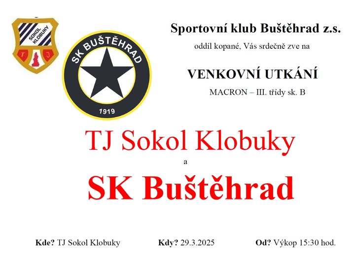 Druhé jarní kolo nám přináší výjezd do Klobuk. Přijeďte nás podpořit, čeká nás velmi těžké utkání. Sobota 29.