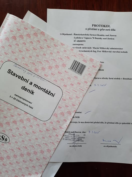 Jedno trápení je u konce. dnes předáno "dílo" Oprava střechy farní stodoly 😅.