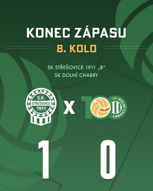 ❌ Střešovice 1911 1:0 SK Dolní Chabry ❌ V osmém kole jsme na půdě Střešovic bohužel podlehli nejtěsnějším rozdílem 1:0. I přes bojovný výkon a šance se nám tentokrát nepodařilo skórovat. Nevadí — jde se dál a soustředíme se na další utkání.