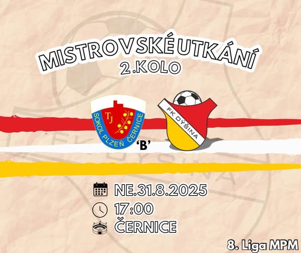 🔜 Další kolo je tady. ⚽ Dnes vyrazíme do Černic, kde se postavíme proti místnímu týmu TJ Sokol Plzeň Černice ‘B’. ⚽️❤️💛 📅 Kdy: Neděle 31.