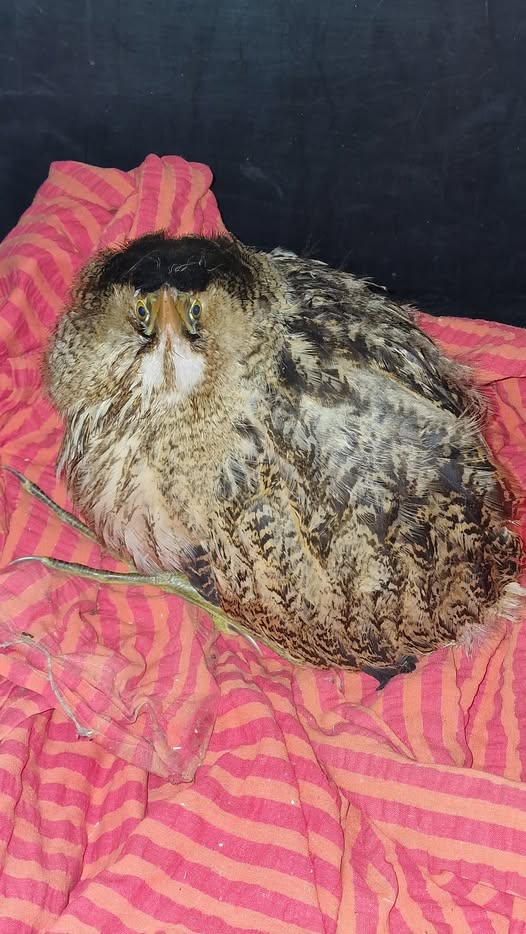 Vzácný host v naší záchranné stanici. Mladý bukač velký byl vysílený, ale po pár dnech péče se mu daří skvěle. Máme radost, že se zotavuje.