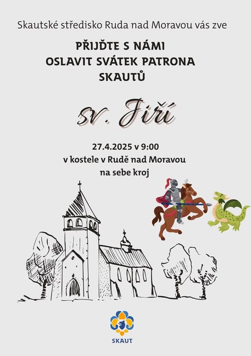 Skautské středisko Vás zve na slavnostní skautskou mši 27. dubna, kdy si připomínáme svátek sv. Jiří, patrona všech skautů.