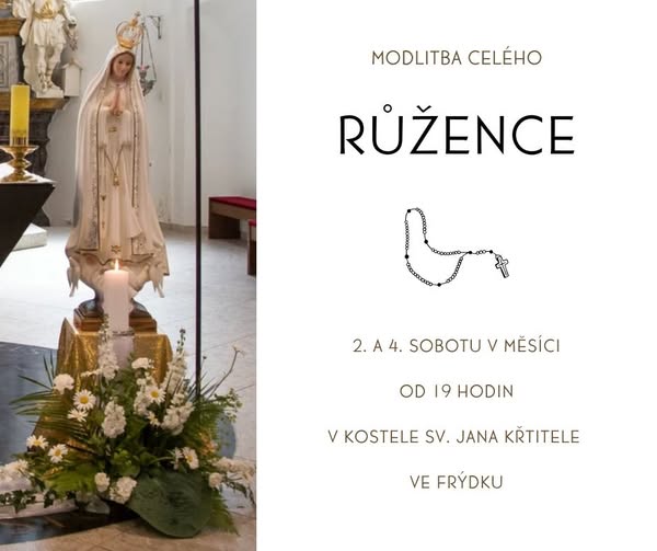 Dnes večer zveme ke společné modlitbě růžence 🙏 V kapli Panny Marie je možnost zapsat úmysly, za které bude obětován poslední - slavný růženec 🫶 💭 ,,Růženec je moje zamilovaná modlitba. Je to nádherná modlitba, nádherná svou prostotou a hloubkou. " (sv.