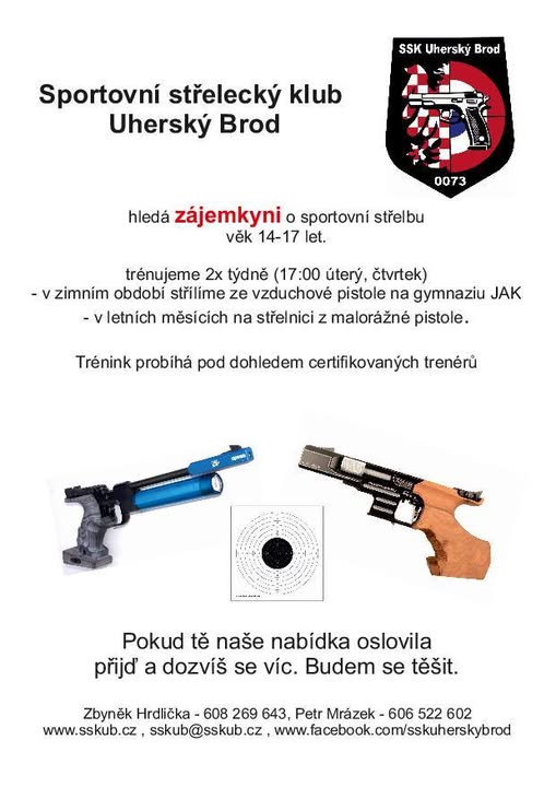 Pro letošní sezénu nabíráme nové střelce. Přijď se podívat a vyzkoušet si sportovní střebu. Těšíme se na tebe.
