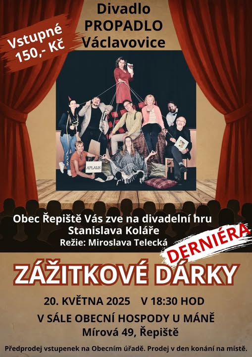 Srdečně Vás zveme na derniéru našich Zážitkových dárků, které Vám naposledy nadělíme v úterý 20. 5. 2025, v 18.