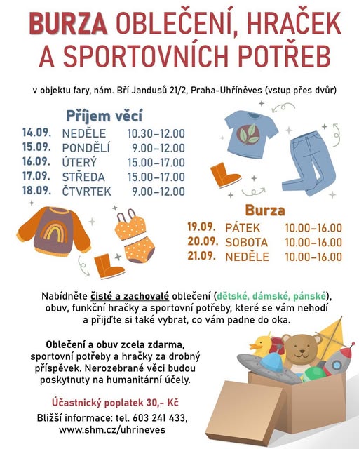 Také letos pořádáme podzimní burzu oblečení, hraček a sportovních potřeb 🤗.